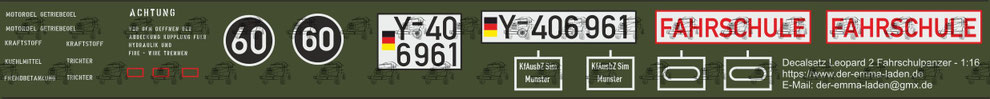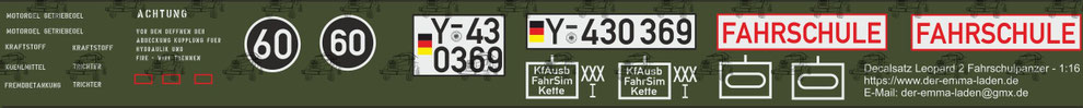 Decalsatz für einen Leopard 2 Fahrschulpanzer.